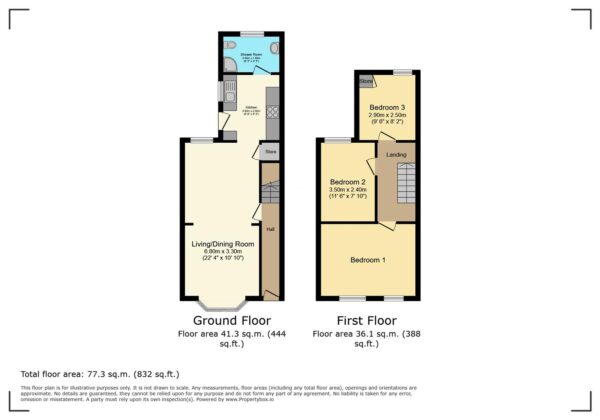The entrance hall leads into an open-plan living and dining area, offering ample space for everyday living. The bay window allows plenty of natural light, and there is functional under-stairs storage.