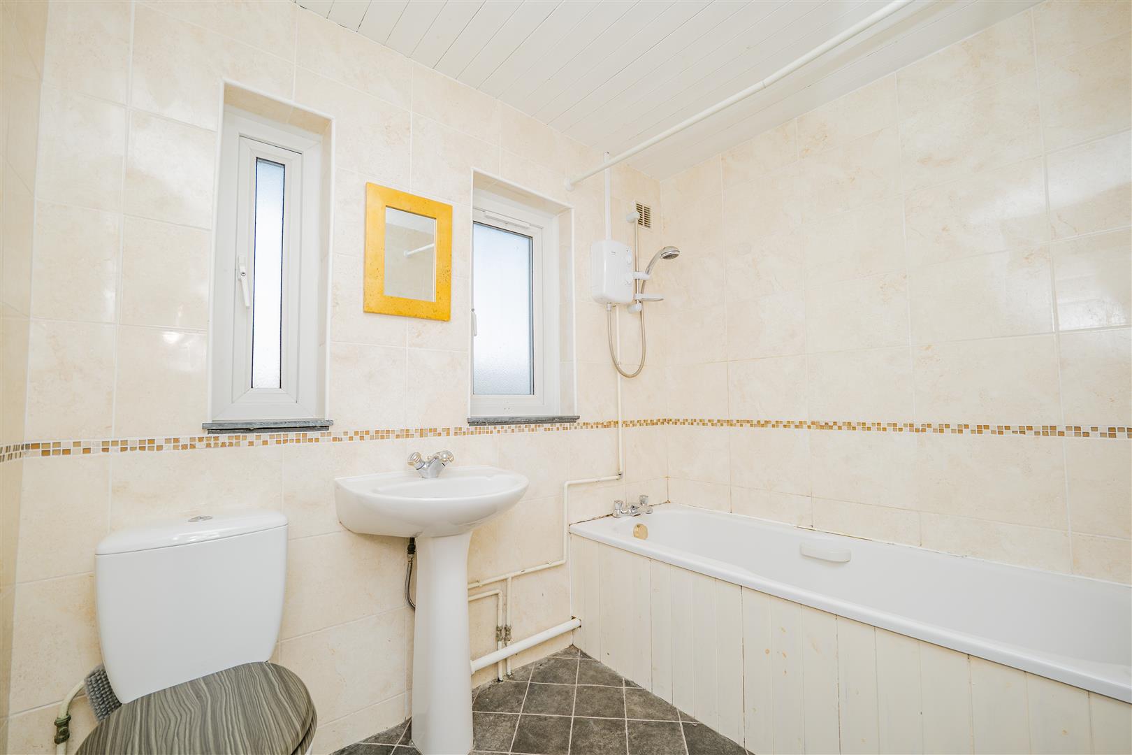 Upstairs, the property features three spacious bedrooms, each offering ample space for furnishings. The second bedroom features built-in wardrobes, providing practical storage solutions. The family bathroom includes a bath with an overhead shower, completing the upper floor. Throughout the home, neutral décor enhances the sense of space and light, creating a serene atmosphere.