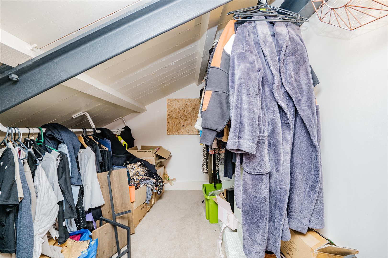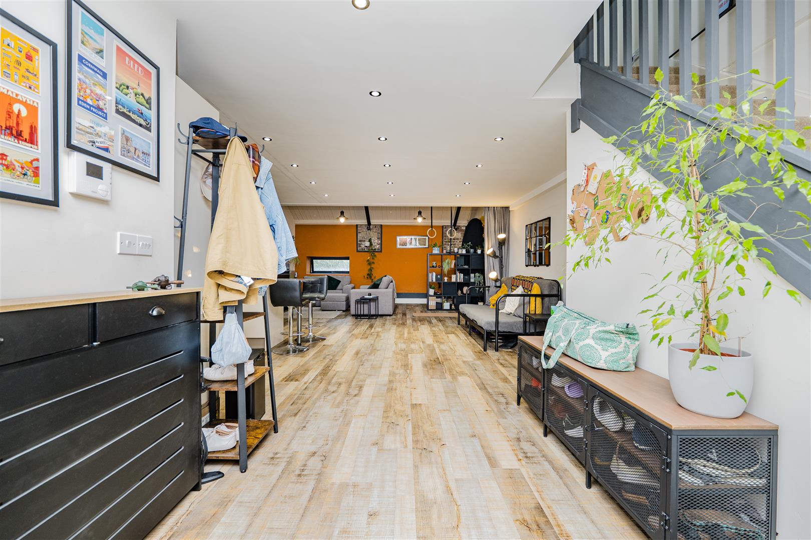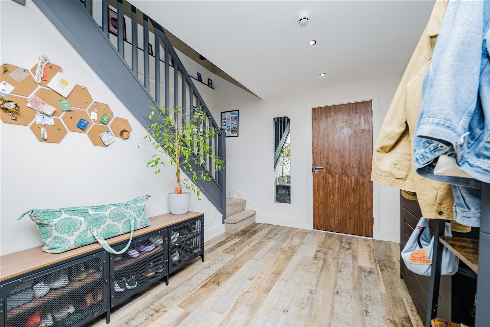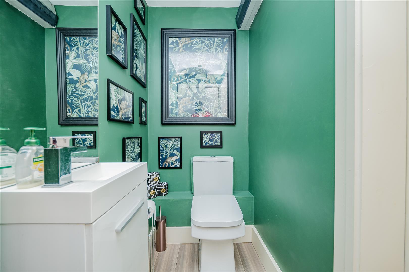 On the ground floor, you are welcomed into a beautifully presented and light-filled open-plan kitchen, dining, and living area – the perfect social space for both everyday living and entertaining. The sleek, modern kitchen offers excellent storage and worktop space, while the spacious living and dining area features stylish décor and plenty of natural light. The ground floor also benefits from a contemporary WC finished in bold green tones and a practical storage area.