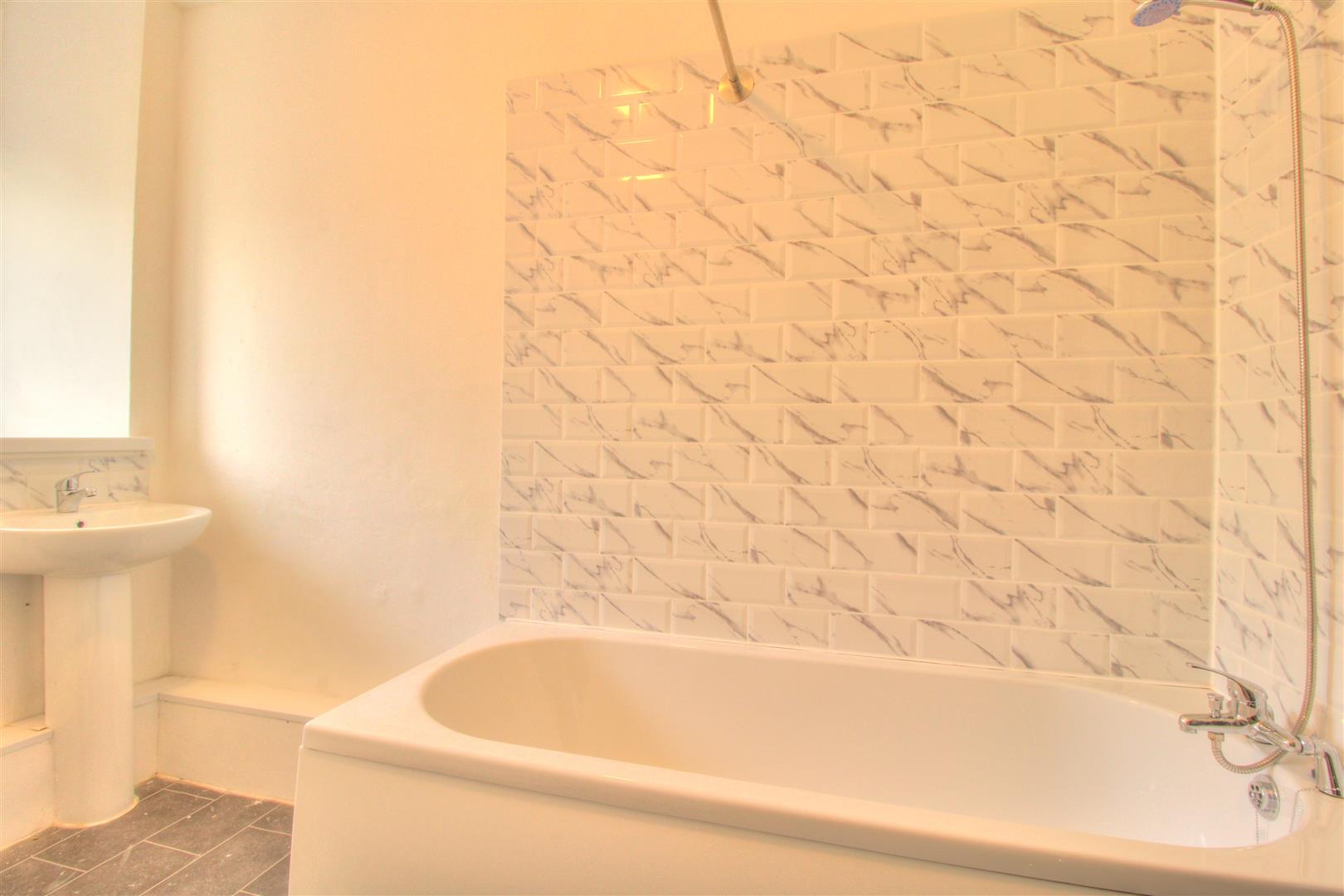 The bedroom is a comfortable double room, finished with fitted carpet and neutral décor. The bathroom is modern in style and equipped with a white suite comprising a bath with a shower over, a wash hand basin, and a WC, with contemporary tiled finishes.