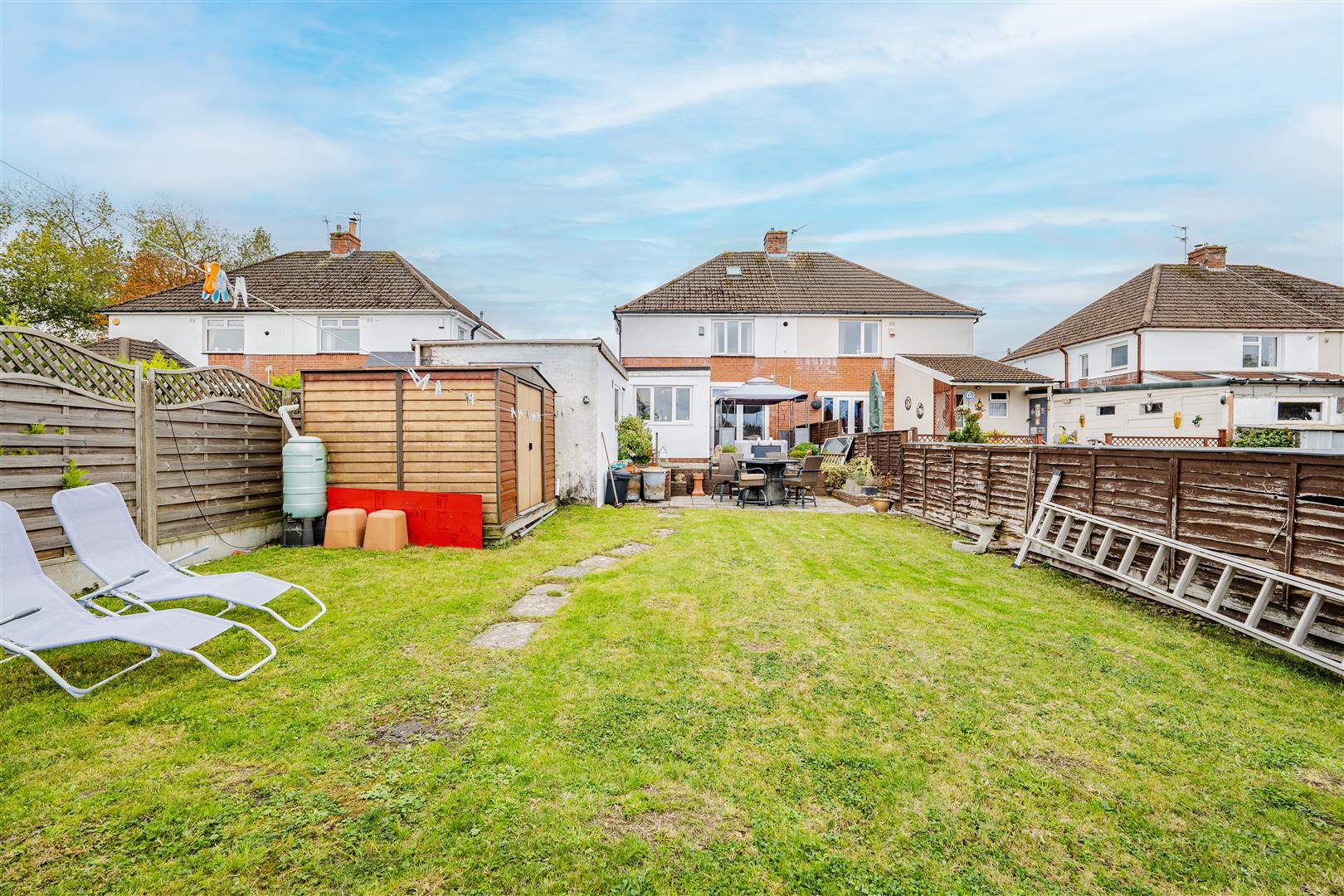 The rear garden is a spacious outdoor haven, featuring a large patio area perfect for outdoor seating and entertaining. This patio leads down to a second patio and a vast, well-maintained lawn, providing ample space for children to play or for hosting outdoor gatherings. The garden also includes a substantial shed for additional storage, access into the garage from the garden, and convenient side access to the property.